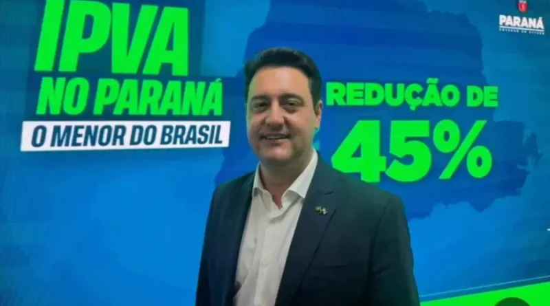 Ratinho Jr reduz IPVA no estado do Paraná para 1,9%.